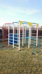 Спортивный игровой комплекс "Лампа" подросткам с 6 лет Характеристики Металлический спортивный многофункциональный комплекс для улицы. Размеры: 3500*3000*2500 мм.