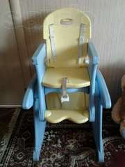 Стул для кормления с 3-я положениями спинки и 3 положения столика, 5 ремней безопасности и подножкой , которая снимается. Предназначен для кормления детей с 5-6 месяцев и можно им пользоваться как стол-парта и стул до 6 лет.