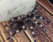 Acanthoscurria geniculata - крупный паук-птицеед рода Acanthoscurria. Благодаря солидным размерам, яркой контрастной окраске и отменному аппетиту этот паук становится украшением любой коллекции.
