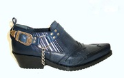 Синие туфли Казаки- изготовлены из гладкой натуральной кожи со вставкой рептилии. Подошва-каучук, не скользит, не лопается от морозов. Производство- Турция. Оплата осуществляется наложенным платежом.