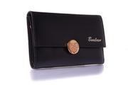 Стильный и аккуратный кошелёк из натуральной чёрной кожи - то, что нужно истинным любительницам винтажных вещичек! Кошелёк включает в себя отделения для удостоверения личности, водительских прав, 4 отделения для кредитных и визитных карт, отделения для купюр любого формата и отделение для мелочи на французском магнитном ретро-замочке.