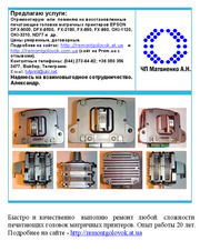 Предлагаю услуги: Отремонтирую или поменяю на восстановленные печатающие головки матричных принтеров EPSON DFX-9000, DFX-8500, DFX-8000, FX-2180, FX-890, FX-880, OKI-1120, OKI-3310, ND77 и др. Цены умеренные, договорные.