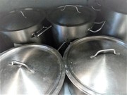 В наличии кастрюли (25л, 17л, 14л, 10л, 8л) сотейнники-ковши (1л, 1, 7 л, 2.5л, 5л) сковорода из нержавейки ( d.25 см, 24 см, 21см, 19см), сковорода чугунная для стейков с деревянной ручкой 26см, сковорода- жаровня с двумя ручками чугунная 33см).