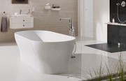 Изысканное сочетание темного искусственного камня и прохладной и элегантной нержавеющей стали придает модели Menoto благородный вид. Стойка для ванны изготовлена из матовой нержавеющей стали, что позволяет ей прослужить вам долго и не потерять свой привлекательный вид.