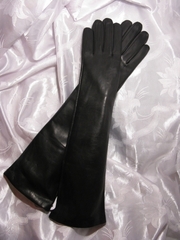 Женские кожаные перчатки на шелковой подкладке Длинные. Размеры: 6, 5 - 7 - 7, 5 Длина: 45 см. Тип подкладки: Шелковая Цвет: Черный Коллекция: Glamour Производитель: GoldOx (Румыния).