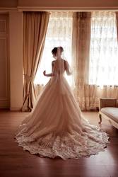 Красивое, нежное свадебное платье на бретелях силуэта «принцесса» со шлейфом известного испанского бренда St. Patrick из Pronovias Fashion Group. Шлейф пристегивается. Кружевной лиф, расшитый бисером, на бретелях, которые «держат» спинку с кружевной аппликацией на прозрачной основе.