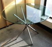 Обеденный стол, круглый стеклянный стол, столешница стекло толщина 10 мм, ножки покрытие нержавеющая сталь. диаметр 90 см, высота стола 77 см. Прозрачный или чёрный..