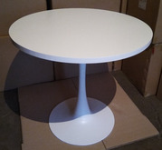 Круглый кухонный стол Агис и стол Оливия. Круглая столешница стола из HPL (экологичный пластик). Диаметр 80 см, толщина 25 мм, кромка pvc, Высота стола 73 см. Цвет белый. Ножка стола металлическая крашенная гладкая блестящая.