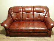Кожаный диван угловой "Угол Ліверпуль" в хорошем состоянии. Подушка слева на липучках, есть ниша для хранения (на фото). В раскладном виде - двухспальный. Размеры по запросу.