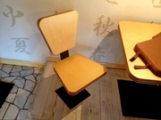 Кресло на ножках из дерева и бежевой обивкой из кожзаменителя. Кресло выполнено с удобной спинкой и очень удобными подлокотниками. Бывшие в употреблении кресла практически в идеальном состоянии.
