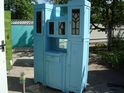 Старый деревянный буфет. Габариты: высота - 2, 09 м, ширина - 1, 42 м, глубина - 35 см. Для обретения первоначального вида требуется реставрация, т.к. лицевая сторона буфета покрашена голубой краской.
