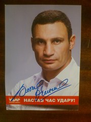 Продам автограф Виталия Кличко. Расписывался лично он сам на своём фото 25-го октября когда приезжал на Троещину с целью предвыборной агитации. Возможен торг..