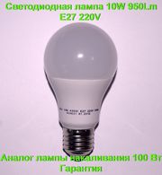 Светодиодная лампа 10W 950Lm E27 220V вольт с гарантией