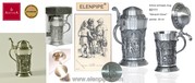 В ассортименте ELENPIPE® представлена подарочная оловянная посуда фирмы Артина (Artina SKS) в виде гравюр и барельефов репродукций произведений великих мастеров. Арт. 12154 кружечка для шнапса "Meisterwerke" ARTINA с крышкой, высота 7.