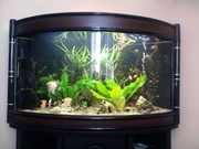 Аквариум с тумбой под красное дерево на 560 литров с рыбками, растениями , и всем оборудованием ! Цена договорная!.