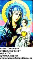 икона дева мария необитаемый цвет - ручная работа, вышита крестиком. размер - 40, 2 на 27, 8 см. иконописеца - Елисеева Оксана Федоровна..