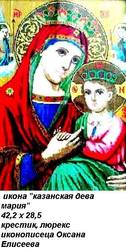 икона казанская дева мария - ручная работа, вышита крестиком. размер - 42, 2 на 28, 5 см. иконописеца - Елисеева Оксана Федоровна..