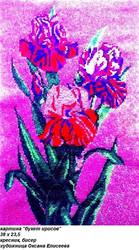 картина букет ирисов - ручная работа, вышита крестиком. размер - 38 на 23, 5 см. художница - елисеева оксана федоровна..