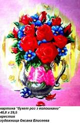 картина букет роз с волошками - ручная работа, вышита крестиком. размер - 40, 8 на 29, 5 см. художница - елисеева оксана..
