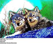 картина пара волков - ручная работа, вышита крестиком. размер - 39, 9 на 28, 6 см. художница - елисеева оксана..