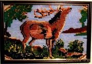 картина олень в лесу - ручная работа, вышита крестиком. размер - 31 на 21 см. художница - елисеева оксана..