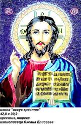 икона исус кристос - ручная работа, вышита крестиком. размер - 42, 8 на 30, 2 см. иконописеца - Елисеева Оксана Федоровна..