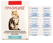Празицид для кошек не следует применять котятам моложе 3-недельного возраста, беременным самкам в первую половину беременности. Празицид для кошек Универсальный препарат действует на все фазы развития круглых и ленточных гельминтов укошек.