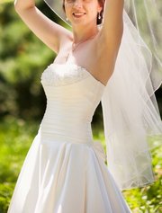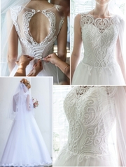 Срочно продам свадебное платье, купили в свадебном салоне Diona в Киеве. Одевала всего один раз, в отличном состоянии, в химчистке не нуждается. Цвет Айвори, верх кружевной, корсет; без шлейфа, сзади на аккуратной молнии.