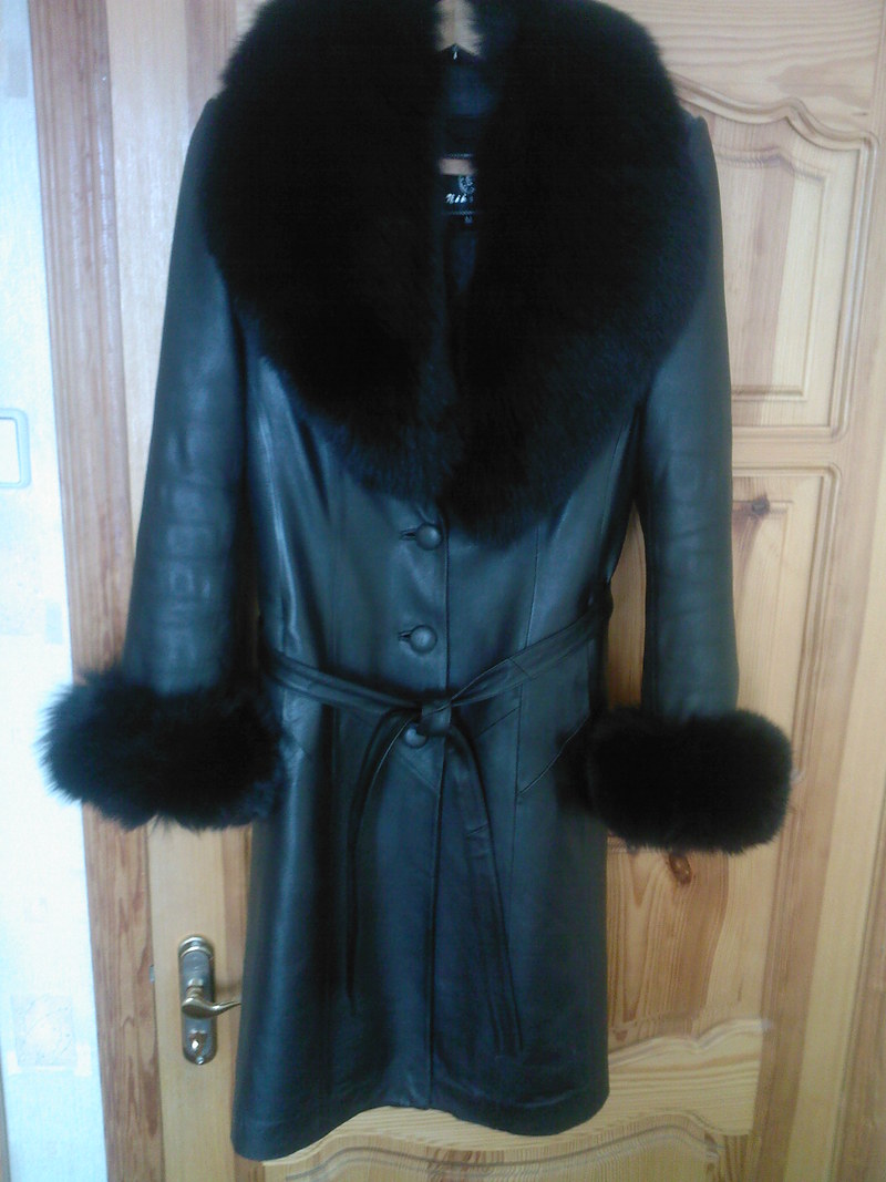 в хорошем состоянии, размер 44, песцовые манжеты и воротник отстегиваются |