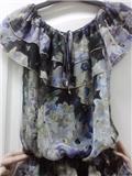 Эффектная маечка с шифоном. Оригинальная модель, отлично смотрится как под джинсовый низ так и под классику. Великолепно подойдет и для праздника и для прогулок и отдыха. Размер S. Материал: 95% вискоза, 5% эластан. Цена 120 гривен Блуза с воланами для любительниц женственных вещей. Очень легкая, невесомая. Для жары отличный вариант. Материал: 100% шелк.Размер М Цена 210 гривен. |