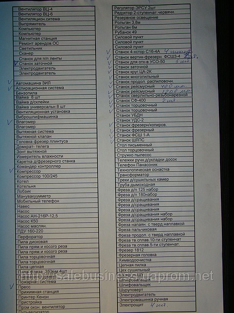 Продажа деревообрабатывающего комплекса в г. Чернигов (ул. Музыкальная). Два здания (Складское помещение и сам комбинат). Общая площадь 970 кв. м. Территория асфальтирована, заезд фур, любого грузового транспорта, рядом ж/д возкал. Автономное отопление на древесных отходах, все коммуникации, 5 сушильных камер на 100 куб. м. Предусмотрена установка лесопилки. Оборудование в рабочем состоянии: Станок 4-х стор С16-4А Станок вертик-фрезерн ФСШ3-4 Станок для отх-в УСО-50 Станок заточной Станок круг. ЦА-2К Станок многопильный Станок продол. распиловочн. Станок рейсмусный СР 400, СР 1200 Станок сверлильно-резьбонарезной Станок СФ-400 Станок торцовочный 2шт. Станок УБДН Станок УДС-2 Станок фрезерн/копировальный Станок фрезерный Станок ФСШ 1-А Станок ШЛПС Станок для п/п ленты Станок заточной пресс для продольной склейки, автомашина ЗИЛ, ручной инструмент и фрезы в ассортименте и прочее. Все в робочем состоянии. ЦЕНА ДОГОВОРНАЯ. За более подробной информацией обращайтесь. Купить деревообрабатывающий комплекс. Email: buisness-gotov@yandex.ru 0504653174 Вячеслав. |