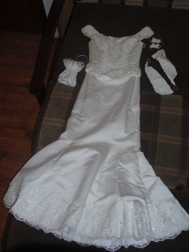 Продам свое свадебное платье, было пошито на заказ, юбка и корсет примерно 44 размер (165-170см), кружева со стеклярусом, украшен корсет и низ юбки, юбка клеш от колен, очень красиво садится. 1000 грн, возможен торг. 0661380758, Ирина |