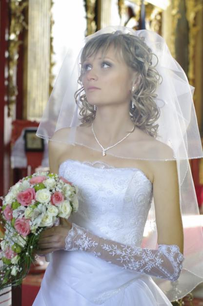 Продам новое фирменное свадебное платье «Юнона» модель «Дива», одевалось один раз, не венчанное, размер 44-46, рост 170-175 см. после еврохимчистки, атласное, поверх органза, цвет белоснежный, корсет на шнуровке, полностью расшит бисером и серебряной нитью, фирменный подъюбник и перчатки в подарок. 2000 грн. ТОРГ! |