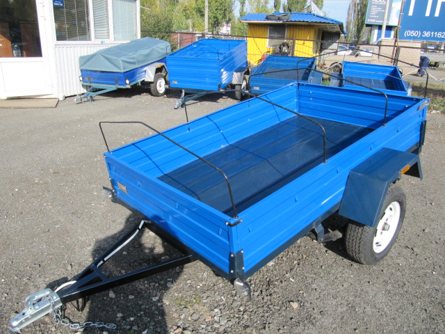 Новый прицеп ПГМФ-8302(Стандарт) грузовой. Рессора – 4-х листовая «Волга». Рамная конструкция и борта усиленные каркасом из уголка. Платформа ровная, колеса вынесены. Задний борт съемный, что облегчает погрузку, разгрузку и позволяет перевозить грузы габариты, которых превышают размеры ящика. Дополнительно комплектуется надставными бортами. Высота борта – 35см. В комплект входят дуги под тент.Отдельно тент - брезент или евро-фура в ассортименте. Общий вес по паспорту - 550 кг. Возможно приобретение без колес - минус 700 грн.Длина - 290 см. Ширина - 164 см. Длина короба - 200 см. Ширина короба - 120 см. Грузоподъемность - 380 кг. Количество мостов – 1. Тормоза – нет. Ст. м. Академгородок пересечение пр. Палладина с ул. Булаховского. Василий, 0674027859, 0503611629. trailer-z@mail.ru www.trailer-z.com.ua