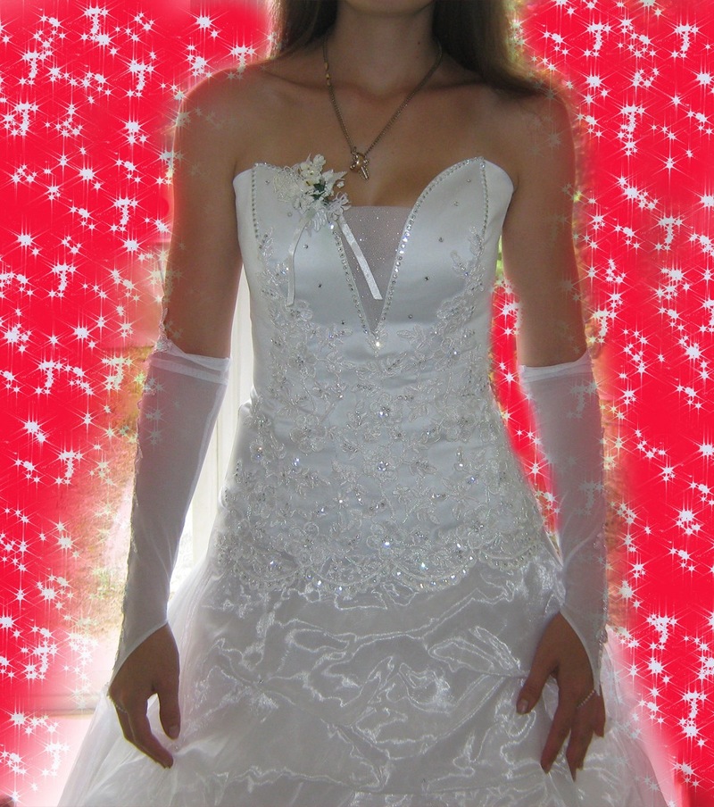Продам свадебное платье в отличном состоянии. Одевалось один раз, не венчаное. Платье белое без бретелек, корсет на молнии и шнуровке. Размер 44-50, на рост 1,60-1,75 (в зависимости от каблука). В подарок к платью кольца и перчатки.Стоимость 1300грн. Торг уместен. Звонить по тел. 063-84-74-055,050-880-33-33 или писать на an-gel2213@yandex.ru |