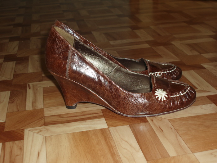 Размер: 36 Абсолютно новые туфли Juma(Польша). Кожа. Красивого коричневого цвета(каштан) с интересной отделкой. Высота каблука - 7см. Невероятно удобная колодка.)) |
