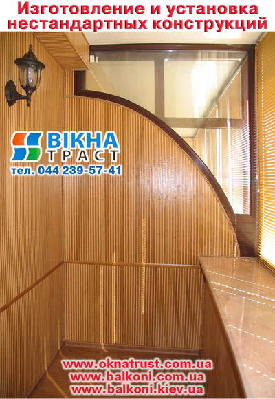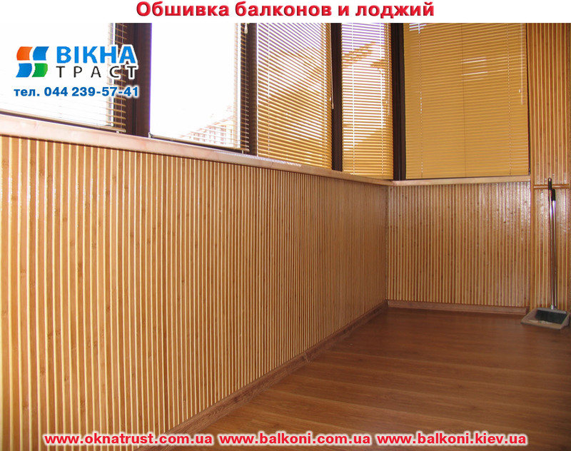 -обшивка балкона: пластиковой вагонкой, деревянной вогонкой, гипсокартоном, бамбуком.