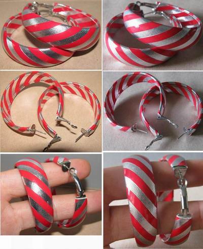 Серьги-кольца красные с серебром - Браслеты, сережки, кольца