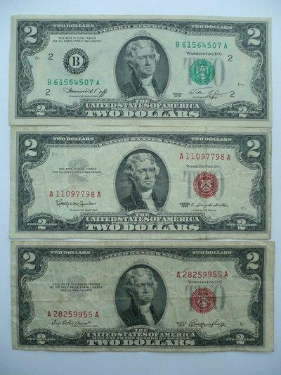 Продам подборку 2-х долларовых купюр 1953, 1963, 1976 года. |