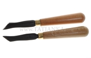 Стамески "Татьянка" серии для мягких пород предназначены для ручной резьбы без применения молотка, киянки. Заточка специальная, предназначена для вырезания по древесине липы, осины, ивы, ели, тополя и ольхи. Закалка металла позволяет срезать древесину и более твердых пород: дуба, сандала, яблони, березы и пр., но делать это не рекомендуется по причине тонкости металла стамесок и самого лезвия при столь малом угле заточки.
