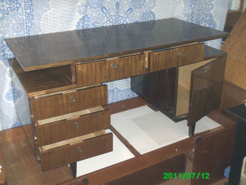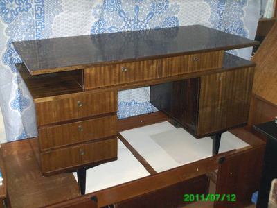 Продам стол письменный б/у 130х60х75. В хорошем состоянии. Темно коричневый, лакированный.Две тумбы(слева три ящика, справа - дверца),под крышкой стола два ящика. |