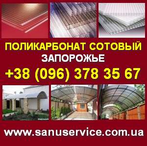Компания «Са.Ну.Сервис» предлагает: Сотовый поликарбонат со склада от производителя. Поликарбонат сотовый: Borrex, Beralux - «Юг-Ойл-пласт» Россия. Сотовый поликарбонат: Makrolon - «Bayer» Германия. Поликарбонат сотовый: 2,1х6 м; 2,1х12 м. Комплектующие к сотовому поликарбонату. Поликарбонат сотовый по оптовым ценам. Сотовый поликарбонат опт и розница. Поликарбонат сотовый доставка по Украине. (096)3783567 (095)5790881 (061)2705016 www.sanuservice.com.ua |