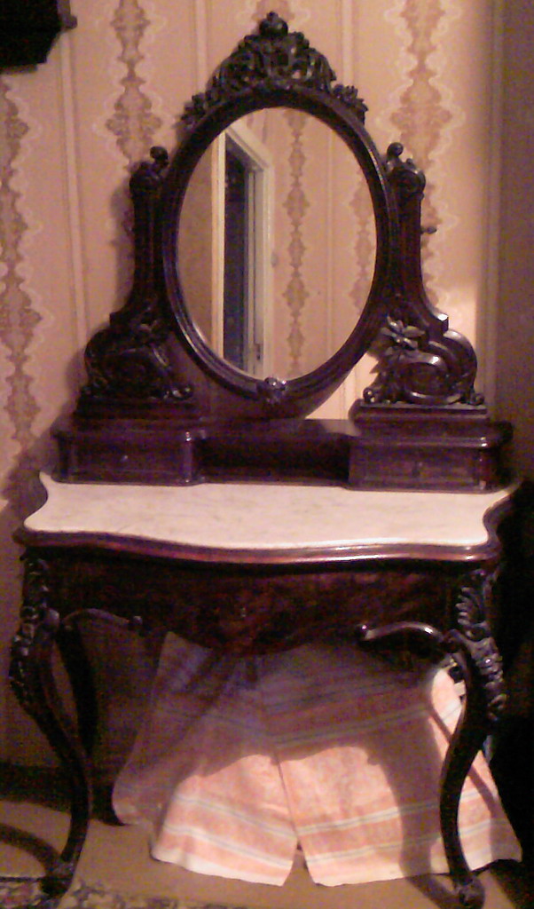 Столик туалетный дамский. Столешница из белого мрамора (без сколов). Вращающееся зеркало (зеркало старое, "седое").Под солешницей большой выдвижной ящик, под ножками зеркала два маленьких выдвижных ящика. Требуется небольшой косметический ремонт. Возможно оформление документов на вывоз за пределы Украины. |