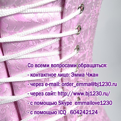 ООО «ОДЕЖДА-1230», которая является одной из ведущих фирм-производителей одежды на территории Китая, наши товары продают в США, Францию, Италию и другие страны. Теперь у нас есть замечательные корсеты в наличии по доступным ценам! Надо заметиить что на ограниченное количество корсетов в наличии, которые, скорее всего, можно будет приобрести только заранее. Skype emmailove1230 ICQ 604242124 order_emma(Собака)bj1230.ru |