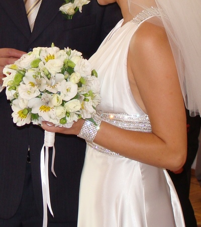 Елегантное белое шелковое платье с открытой спиной, поясом со стразами такими же шлейками.В платье шиты чашки под 2-3 размер груди.Само платьена 42-44 размер. |