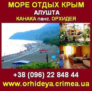 Пансионат ОРХИДЕЯ Канака (Алушта, Канакская балка) предлагает: Отдых на Черном море ЮБК недорого! Отдых у моря и оздоровление под Алуштой. Отдых в Крыму в парковой зоне Алушта - Судак. Семейный отдых в Крыму - от элитного коттеджа до эконом класса. Отдых у моря - заказник Канака. Бронирование отдых в Крыму - пансионат ОРХИДЕЯ. +38(096)2284844 АР Крым, Алушта пос. Приветное Канакская балка www.orhideya.crimea.ua |