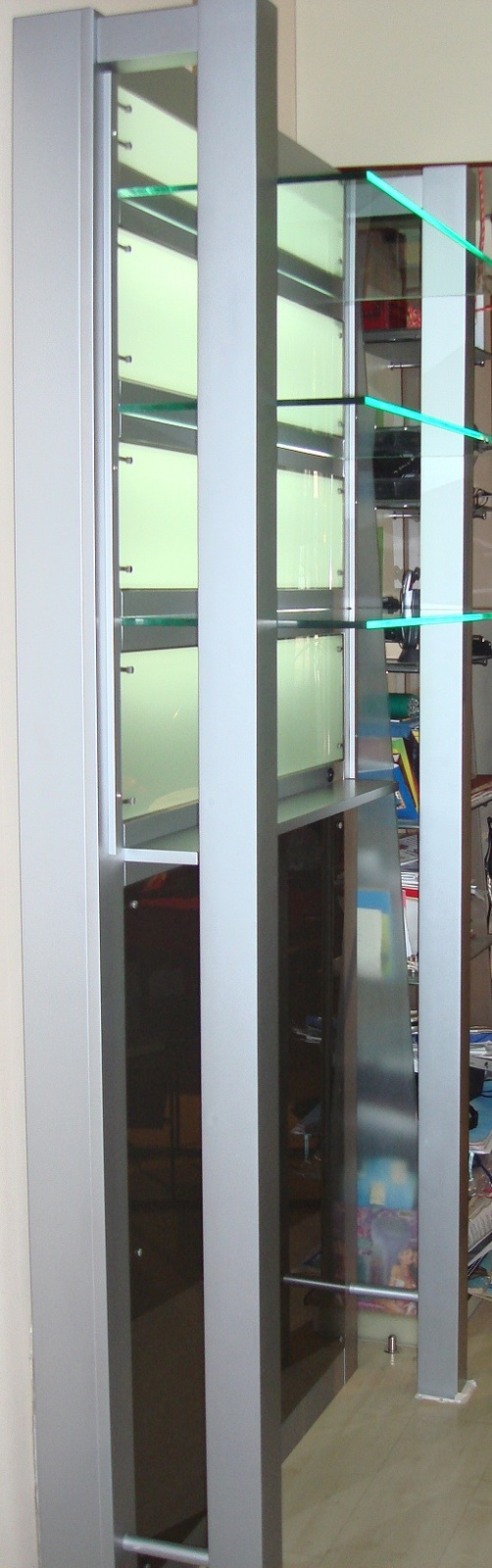 Размеры: габариты 2350*1100*350, внутренняя часть (для телевизора) 1180*940*230. Изготовлена из МДФ, цвет-алюминий, полки из толстого стекла с полированными торцами. Подсвечиваются торцы полок и верхняя часть задней стенки. 5 эл.розеток с правой стороны и желоб для проводов. Состояние отличное (цена 2000грн). Фото по запросу.