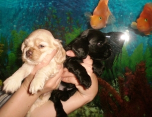 Щенки американского кокер-спаниеля: черные, черно-подпалый окрас и бело-рыжий. От элитных родителей. Послушные и ласковые, очень любят детей. Наличие родословной! Щенки шоу класса. Оформлены документы КСУ, клеймо, прививки. (067) 508-55-54 (063) 244-44-90 |