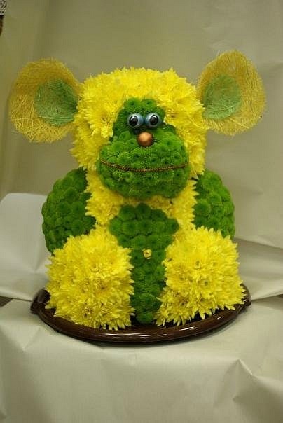 Игрушки из цветов в качестве знака зодиака очень нравится тем кто прислушивается к гороскопам. Игрушка из цветов в виде любимой собачки или кошечки станет прекрасным подарком.