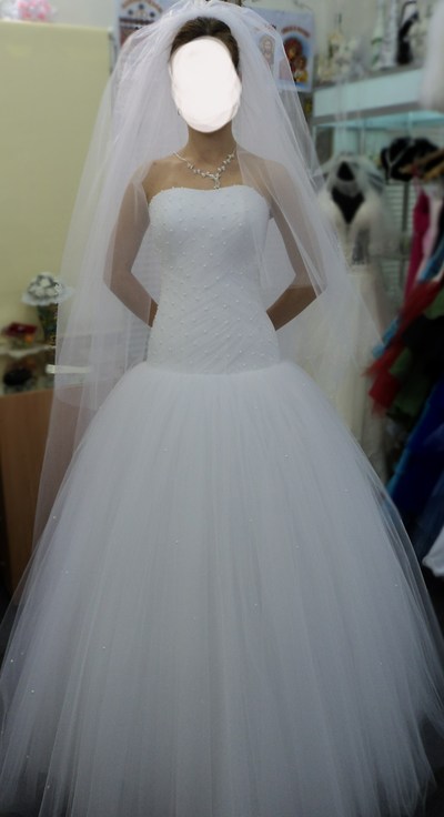Совершенно Новое свадебное платье! На свадьбу не одевалось. Цвет белый. На стройную девушку. Размер 42-44, регулируется за счет корсета. Рост 170 + небольшой каблук. Низкая талия. Корсет на молнии + шнуровка лентой,расшит бусинками. Качество шикарное! С платьем в подарок отдам длинную фату, кринолин на 2 колечка и чехол для хранения платья! Все подробности лично. |